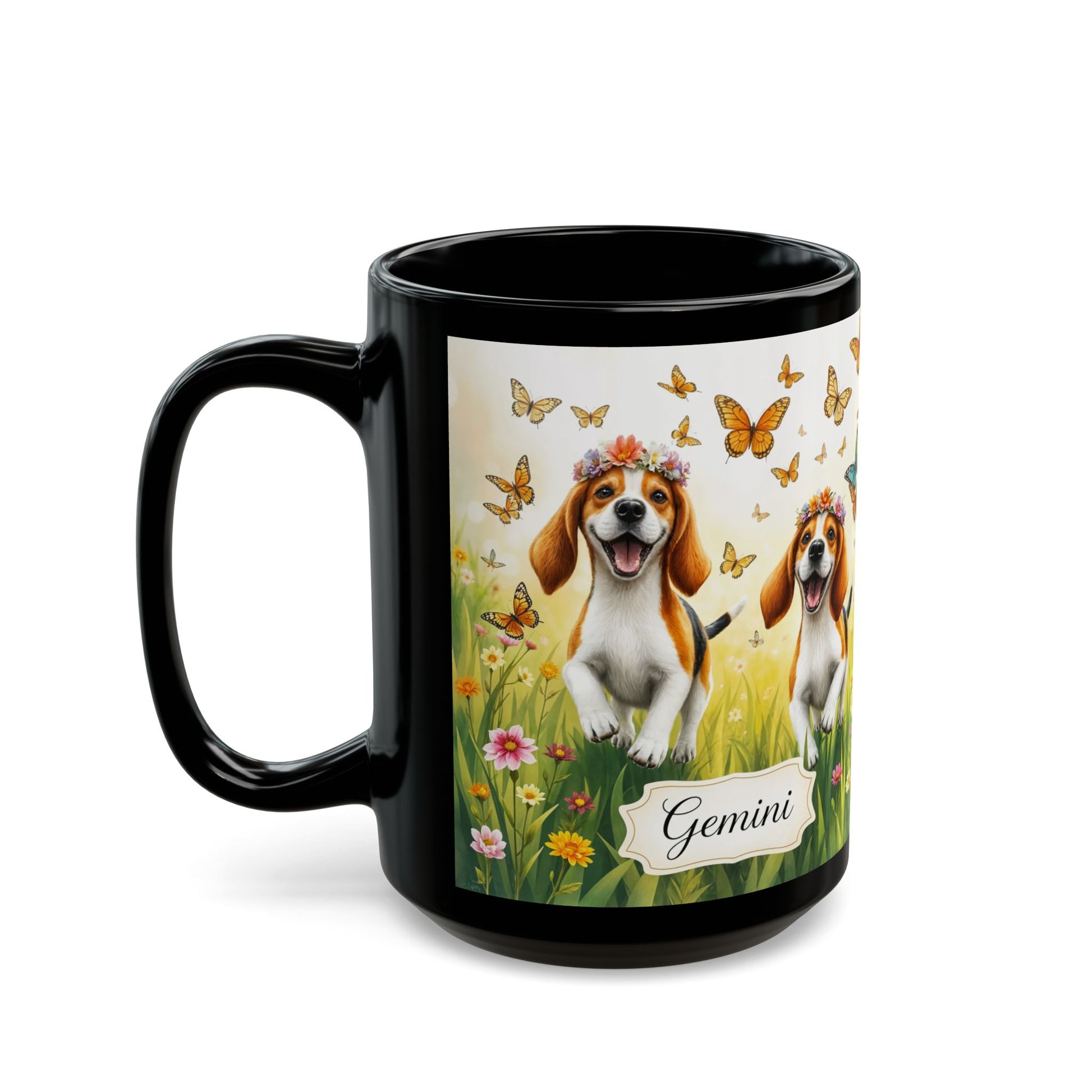 "Gemini Twin Beagles" Black Mug (11oz, 15oz)